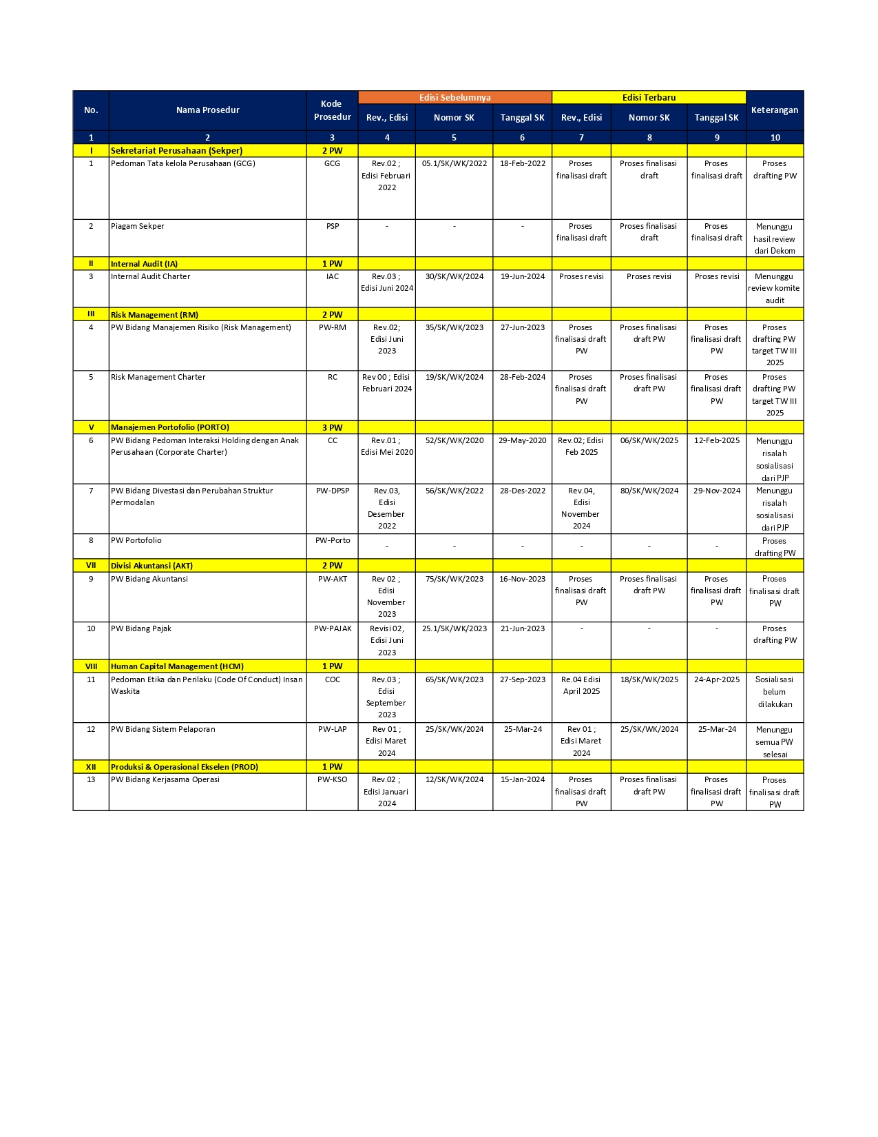Daftar rancangan dan tahap pembentukan peraturan perundang-undangan, keputusan, dan/atau kebijakan yang sedang dalam proses pembuatan