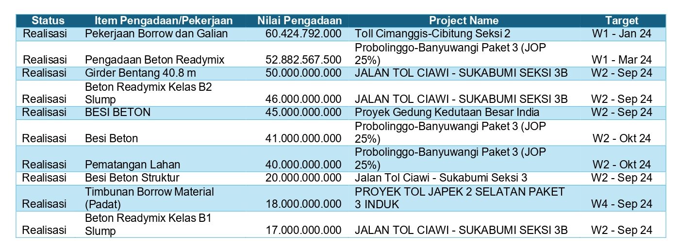Daftar Seluruh Dokumen Kontrak Pengadaan Barang dan Jasa Tahun 2024