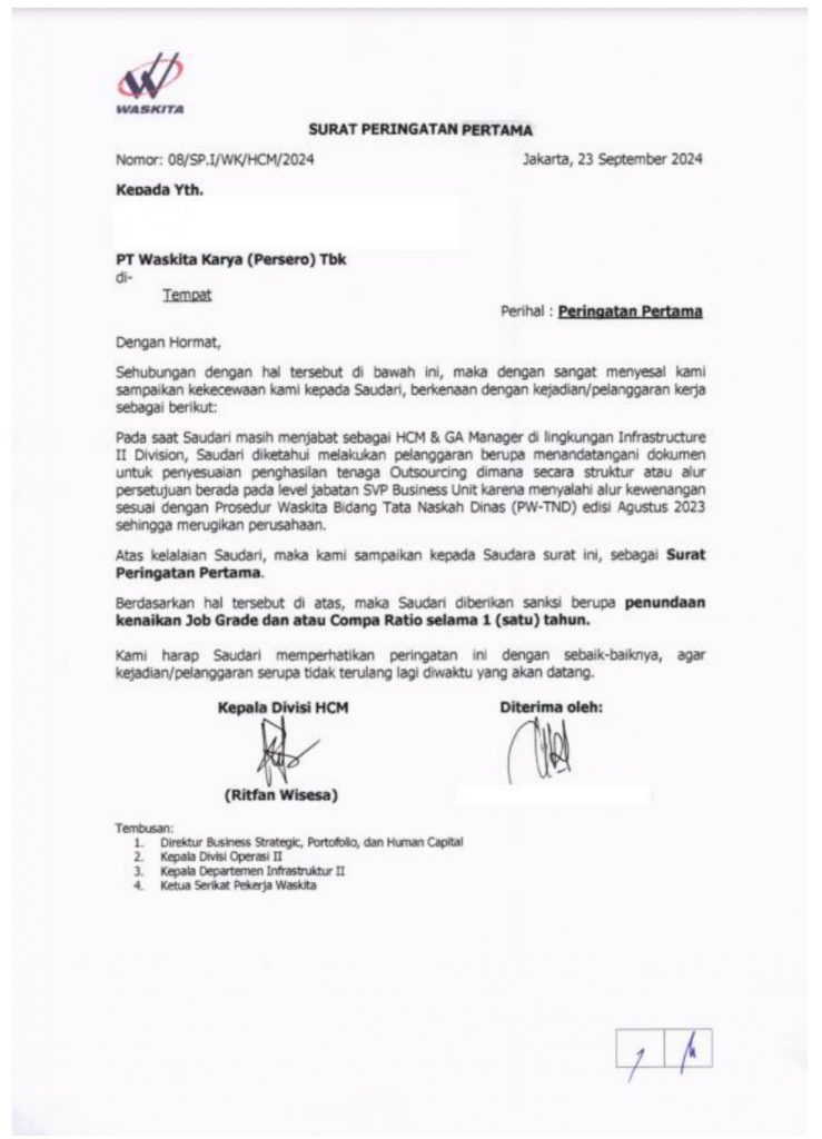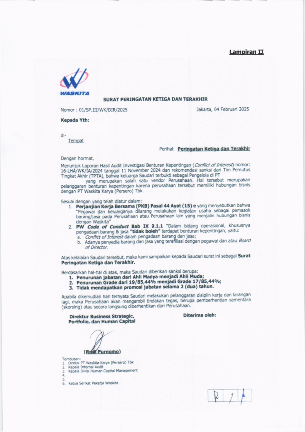 - Pelanggaran kewenangan dalam penandatanganan dokumen penyesuaian penghasilan tenaga outsourcing. (Tahun 2024)