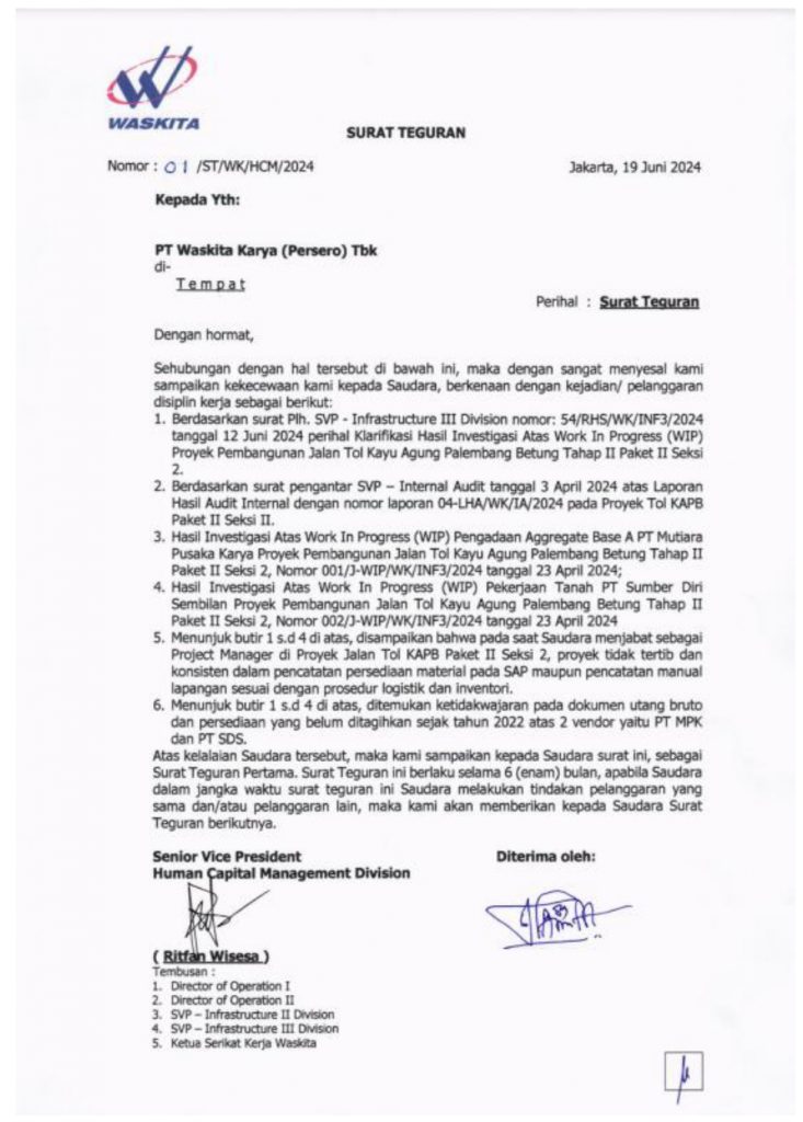 Hingga September 2025, terdapat 3 (tiga) pelanggaran yang ditemukan dalam pengawasan internal PT Waskita Karya (Persero) Tbk yaitu: