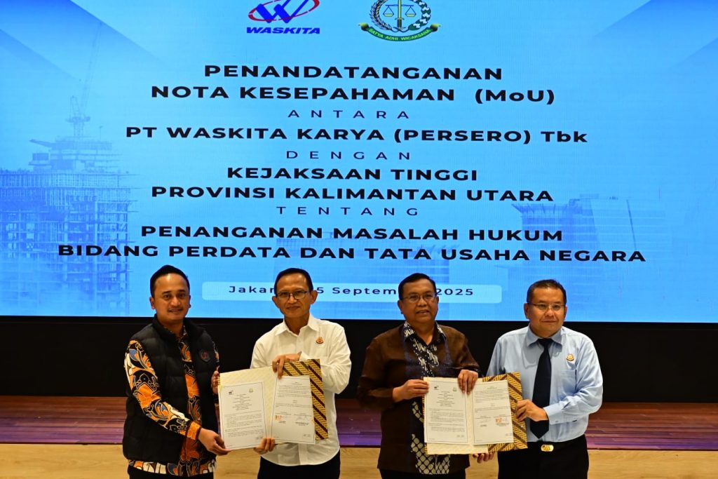 Jakarta, 26 September 2025. PT Waskita Karya (Persero) Tbk menggandeng Kejaksaan Tinggi Kalimantan Utara (Kejati Kaltara) terkait penanganan masalah hukum Bidang Perdata dan Tata Usaha Negara (DATUN). Khususnya dalam pendampingan dan fungsi pengawasan kejaksaan pada proyek rumah sakit yang tengah dikerjakan oleh Perseroan di wilayah Kaltara yaitu RSUD Akhmad Berahim Tana Tidung.